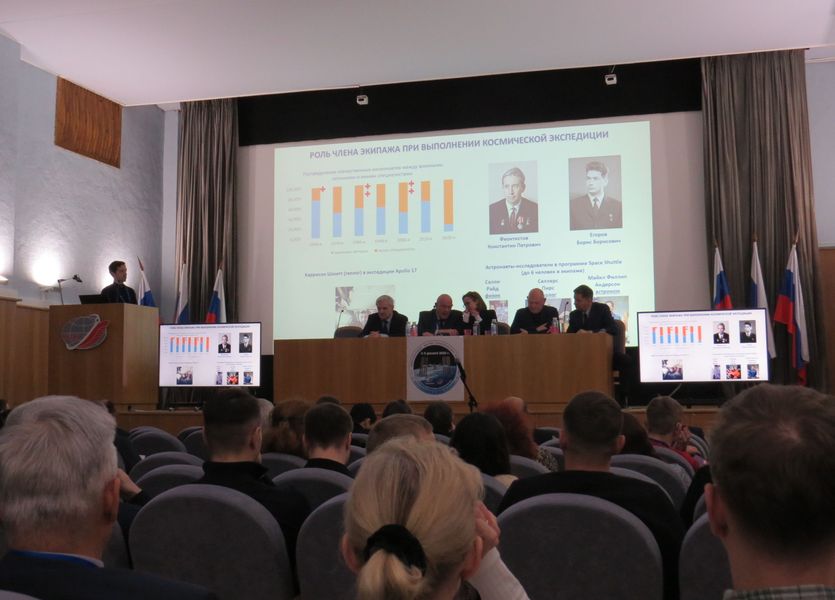 Общая тема четвертого лекционного дня: "Ивановская область: история, культура, промышленность". Прозвучали доклады заведующего кафедрой истории России ИвГУ В.С. Околотина "Производства города Иваново в годы Великой Отечественной войны" и профессора кафедры всеобщей истории и международных отношений ИвГУ В.Л. Черноперова "Иваново в культурных и международных связях конца XX - начала XXI веков: основные события и направления". Но первым выступил педагог школы-музея "Литос-КЛИО" МБУ ДО ЦОТ "Омега" С.А. Беляков на тему "Россия и Ивановские земли в доисторическое время". В получасовом докладе была развернута четырехмиллиардолетняя история того места, где сейчас расположена Ивановская область: как менялись рельеф и климат, какие животные и растения сменяли друг друга на протяжении геологических эр и периодов, какие полезные ископаемые здесь образовались и почему так важно изучать геолого-палеонтологическое прошлое Ивановской области для понимания ее современной истории и развития за последнюю тысячу лет. Докладчику были заданы многочисленные вопросы, причем некоторые слушатели заранее подготовились и принесли окаменелости на определение. На международной конференции по пилотируемой космонавтике в Звездном городке 3-5 декабря 2025 года в Центре подготовки космонавтов им. Ю.А. Гагарина (Звездный городок, Московская область) состоялась XVI Международная научно-практическая конференция "Пилотируемые полеты в космос". В программе конференции было представлено 217 докладов ученых и специалистов, чьи научные исследования и практическая деятельность связана с пилотируемой космонавтикой, ее развитием, проблемами, перспективами, а также с привлечением молодежи в космическую сферу. Более 300 участников из 50 организаций посетили мероприятия конференции. В числе почетных гостей - зарубежные коллеги из Беларуси, Индии, Мьянмы, Казахстана, США, ЮАР, Буркина-Фасо, Алжира и Туниса. На открытии конференции и пленарном заседании прозвучало приветственное слово от российских космонавтов с борта МКС. Центр подготовки космонавтов стал площадкой по обмену опытом и идеями, технологическими заделами, связанных с подготовкой космонавтов (технические средства, эксперименты в космосе, поддержание здоровья и долгожительства космонавтов). Большое внимание было уделено новой Российской орбитальной станции, ее целям, задачам, перспективам развития, техническим характеристикам. Для гостей конференции была организована культурно-развлекательная и экскурсионная программа. В зале центрифуги ЦФ-18 состоялась выставка космической живописи, проектов космоархитектуры, моделей и космических миниатюр "Мост в космос", организованная АНО "Космос вдохновляет" и секцией военно-исторических миниатюр московского отделения Российского военно-патриотического общества. В концертную программу вошли выступления творческих коллективов Рыбинска, Рязани, Москвы и Московской области. Сотрудница Ивановского музея камня Е.Е. Улитина выступила с авторским стихотворением "Рожденный вновь", которое посвящено подвигу космонавта Б.В. Волынова (космонавт А.Н. Овчинин отметил техническую грамотность стихов). Во время концерта состоялась презентация детского журнала о космосе и космонавтике "Космик". После концерта все желающие могли получить автографы космонавтов. На кругло