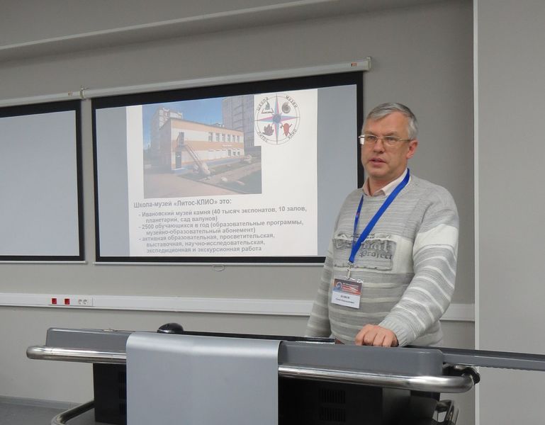 В конференции приняли участие в очном и дистанционном формате учителя, воспитатели, педагоги дополнительного образования, преподаватели вузов, руководители образовательных учреждений Иванова, Заволжска, Москвы, Воронежа, Норильска, Красноярска, Ярославля, Рыбинска. Они поделились своим опытом, провели многочисленные мастер-классы, рассказали о новациях и достижениях в педагогической работе. 26 марта на секции "Современные технологии в системе дополнительного образования" с докладом "Космическое просвещение в школе-музее "Литос-КЛИО"" выступил педагог школы-музея Беляков С.А. В своем выступлении он рассказал о просветительской работе в музее камня по теме космоса и космонавтики. В частности, подробно были рассмотрены основные направления этой работы: экспозиционно-выставочное, образовательно-воспитательное, просветительское, общественное и сетевое, научно-исследовательское. Выступление вызвало большой интерес слушателей секции. Прозвучали вопросы о работе музея, планетария и мероприятиях. Текст доклада будет опубликован в специальном сборнике. Все выступавшие и участники конференции, в том числе педагоги школы-музея, принявшие участие в дистанционном формате, получили электронные сертификаты. Музей камня - во всероссийских реестрах