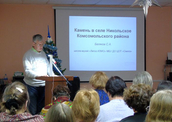 В зале библиотеки собралось более пятидесяти любителей краеведения, музейщиков, педагогов, библиотекарей, учащихся. Доклады были посвящены знаменитым людям, родившимся или работавшим на комсомольской земле, историческому наследию района. Достопримечательности Комсомольского района и история камня в селе Никольском стали основной темой выступления педагога школы-музея "Литос-КЛИО" МБУ ДО ЦОТ "Омега" С.А. Белякова. Доклад вызвал большой интерес - многие из участников чтений были в Никольском и знают о существовании камня. После конференции сотрудники библиотеки и зала трудовой и боевой славы Комсомольска показали краеведческие фонды городской библиотеки и поделились мыслями о сотрудничестве Ивановского музея камня и учреждениями культуры Комсомольска. "Теория совершенства". О доисторическом прошлом нашего края