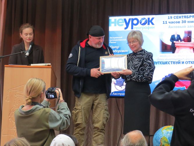 Программа акции была очень насыщена и разнообразна. В этот вечер гостям были доступны все залы первого этажа музея. Ивановцы с большим удовольствием рассматривали экспонаты зала-фойе "Приглашение в мир Земли и космоса", играли в "Минеральную азбуку", смотрели на большом экране космическую викторину, слушали сообщение ТАСС о запуске первого спутника и путешествовали меж звезд. В фойе можно было сфотографироваться рядом со статуей Прометея и в фотозонах "Полет на Луну" и "Инопланетяне". Залы "История и краеведение" и "Образ в камне" были полны посетителей. Большое внимание привлекли выставки "Осколки прошлого. Иваново - 150+" и "Черно-белая война" в конференц-зале. Огромный интерес вызвали экспонаты зала "Астрономия и космонавтика". Заместитель директора по научно-методической работе и руководитель музея А.И. Лапыкин и педагог-организатор школы-музея Д.В. Часов провели для гостей акции две обзорные экскурсии по залам "Минералогия и геология", "Палеонтология", "История и камень" и интерактивному залу. Завершение каждой экскурсии сопровождалось удивительной красоты лазерным шоу "Кристаллическое послание в космос". В планетарии состоялись три сеанса, на которых были показаны фильмы "Космическая история России", "Розетта", "Сокровища Вселенной" и "10 шагов сквозь небо. Шаг 2. Созвездия". В учебном кабинете музея проходили мастер-классы для детей и взрослых. Мастер-класс по созданию открытки "Акварельный космос" в технике алла прима провела педагог П.А. Коптелова. Педагог В.Э. Титова вместе с ребятами создавали ночное небо в технике граттаж. А педагог Н.А. Бражник предлагала попробовать свои силы в изготовлении книжной закладки "Первый спутник" в технике бумажной мозаики. Все созданные своими руками творения ребята и взрослые унесли с собой на память о празднике. В конференц-зале в рамках лектория "Космические рубежи науки" прошла встреча с путешественником, Почетным гражданином Ивановской области и города Иваново, председателем регионального отделения Русского географического общества О.В. Волынкиным. Его лекция "Под созвездием Ориона. Путешествие на тримаране "Русь"" вызвала огромный интерес. Олег Викторович рассказал об исследованиях Арктики, о поиске легендарной Земли Санникова и о своих экспедициях на тримаране "Русь" по Северному Ледовитому океану. Благодарим всех, кто помогал в организации и проведении акции: педагогов и сотрудников школы-музея и ЦОТ "Омега", учащихся объединения "Земля и Вселенная" и их родителей, членов общества любителей камня, друзей музея камня! "Неурок географии" в Шуе 19 сентября 2025 года в Шуйском филиале Ивановского государственного университета под эгидой Русского географического общества состоялась международная просветительская акция "Неурок географии", основная цель которой - широкая пропаганда географических знаний среди разных слоев населения и в первую очередь - среди учащейся молодежи: школьников и студентов. В аудитории университета собралось около двухсот человек, том числе школьники и их учителя из Иванова, Шуи, Фурманова и других городов Ивановской области. Приехали и обучающиеся объединения "Земля и Вселенная" школы-музея "Литос-КЛИО" ЦОТ "Омега": Н. Кукаева, Г. Сухарев, И. Забродин, Я. Забродин, Е. Назарова, Р. Иванов, Л. Песнин, П. Лапшин, Д. Денисов, Т. Небойков, Б. Прошек, М. Рыбкин (руководитель групп